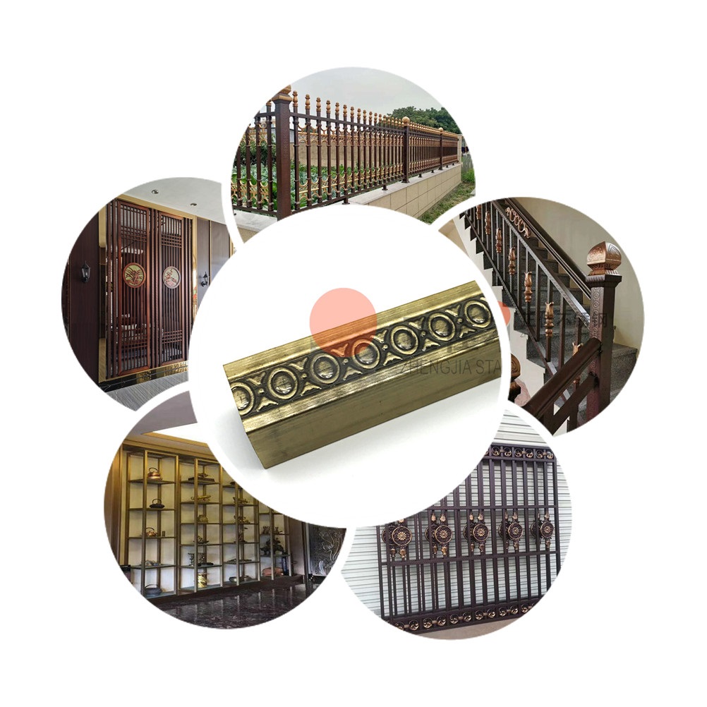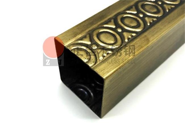 本款產品是新型的藝術不銹鋼裝飾管,在不銹鋼管的表面壓出元寶花紋再鍍銅使不銹鋼管表面呈現古銅色,可以定制各種花紋.